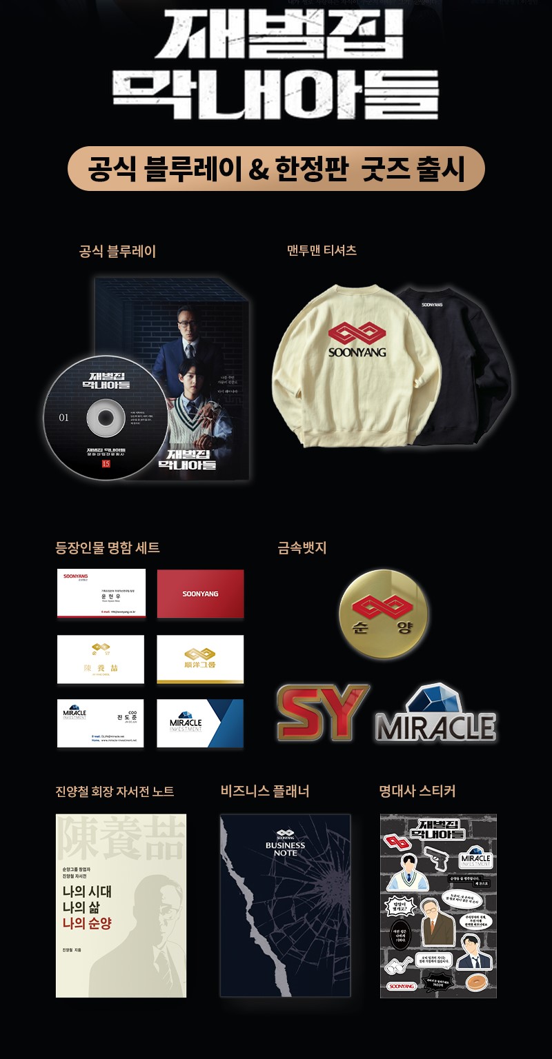 누구나 한 번쯤 상상했을 법한 ‘지금 기억을 갖고 과거로 돌아간다’는 참신한 주제를 드라마화 한 ‘재벌집 막내아들’은 최종회 시청률 30%를 돌파하며 2022년 하반기 국내 드라마 최고의 시청률과 화제성을 기록(닐슨코리아 기준)한 드라마다. 세련된 연출과 몰입감을 선사하는 연기력으로 시청자들을 울고 웃게 한 작품의 블루레이와 굿즈라서 관심이 모아지는 상황이다.